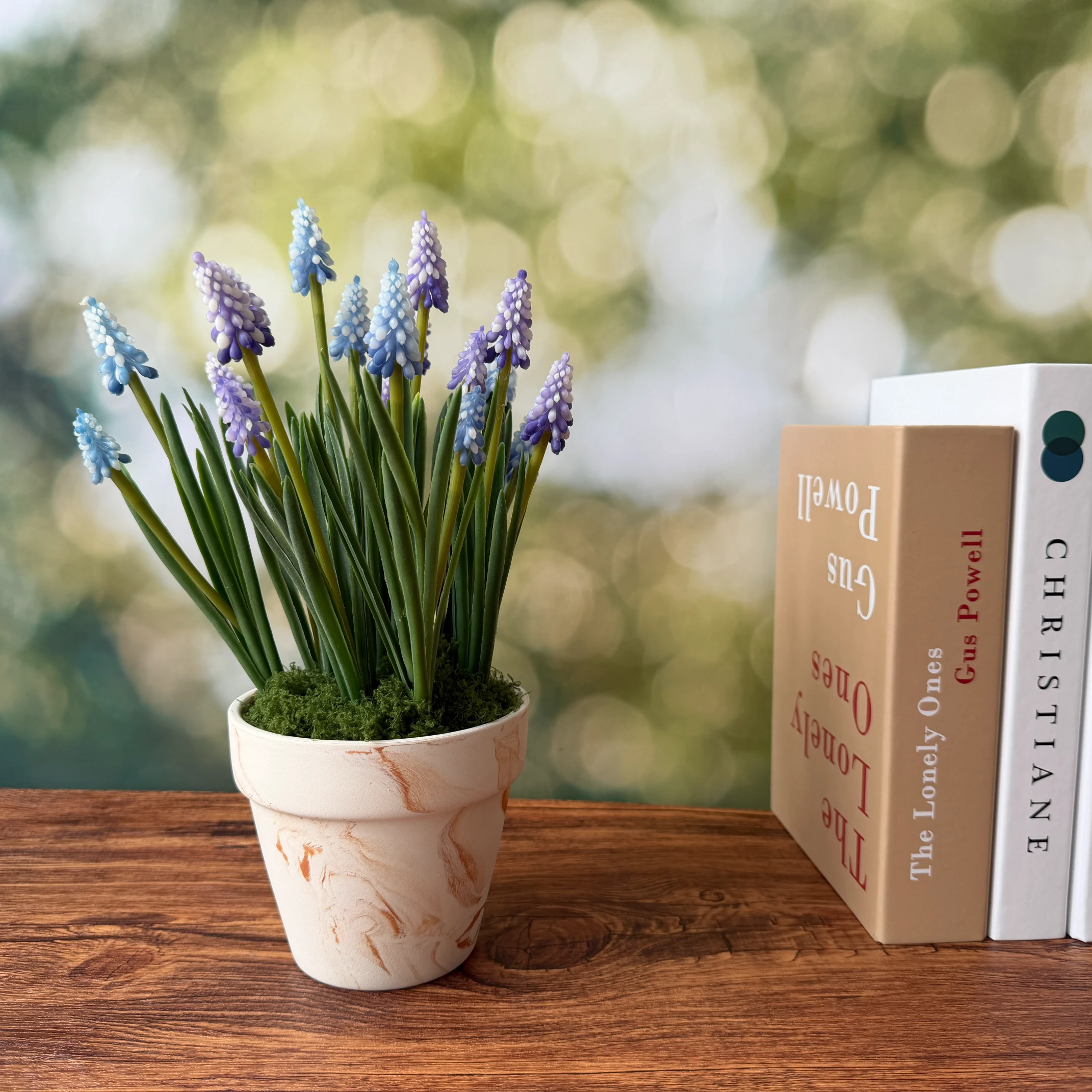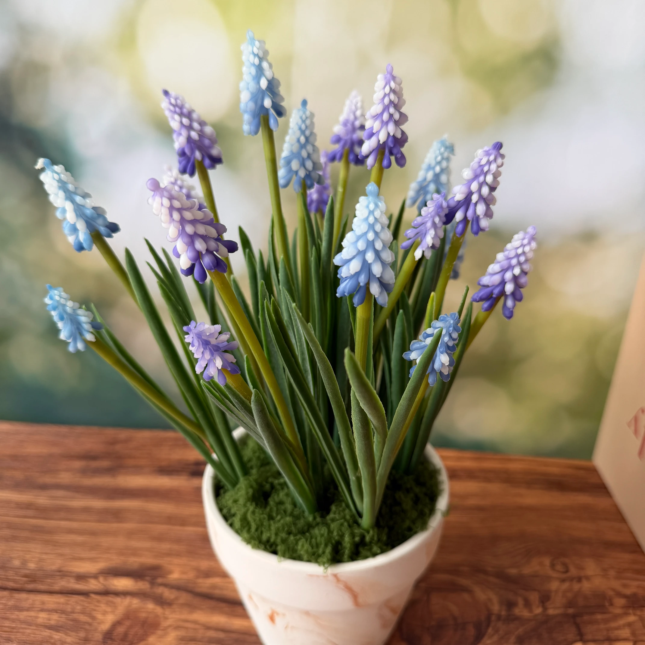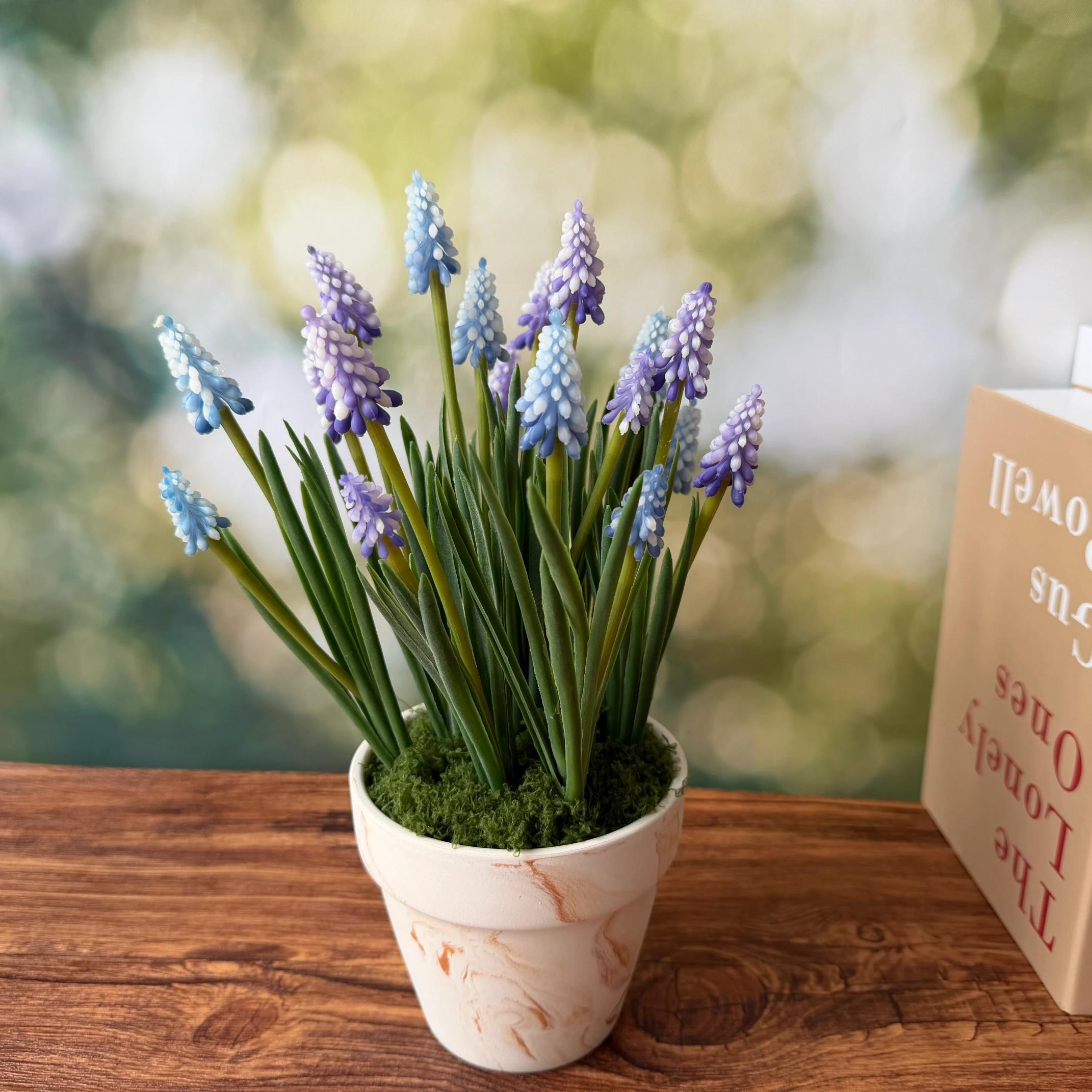 Jacinto Azul Artificial em Vaso Branco | Decoração Delicada para Cantinho