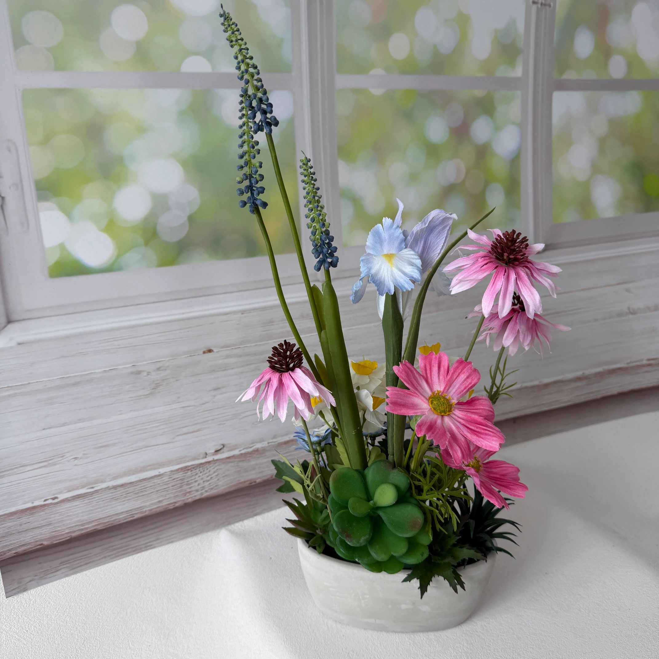 Perfeita para mesas, prateleiras ou cantos estratégicos, esta peça é uma escolha versátil para transformar espaços e criar um clima acolhedor. Sem precisar de água ou luz do sol, ela permanece impecável em qualquer estação.