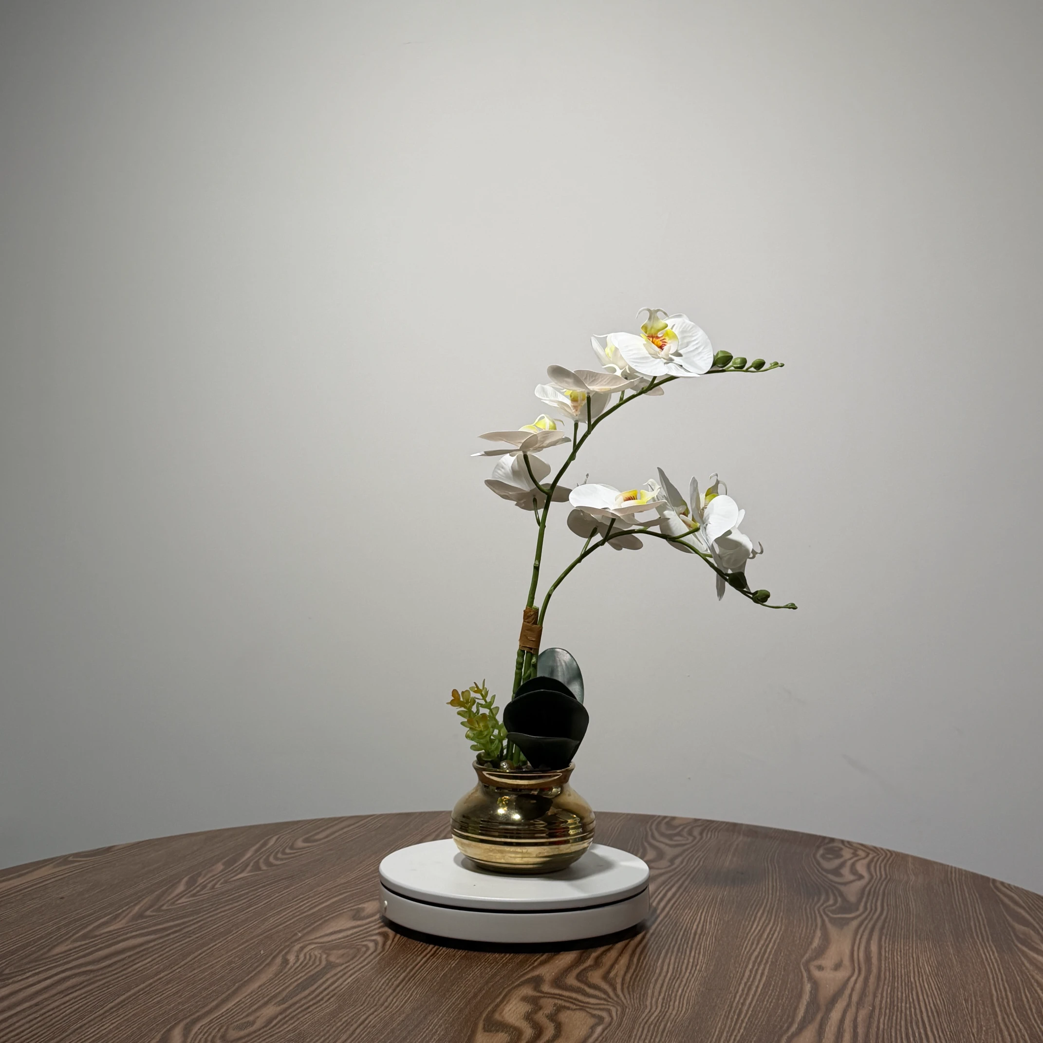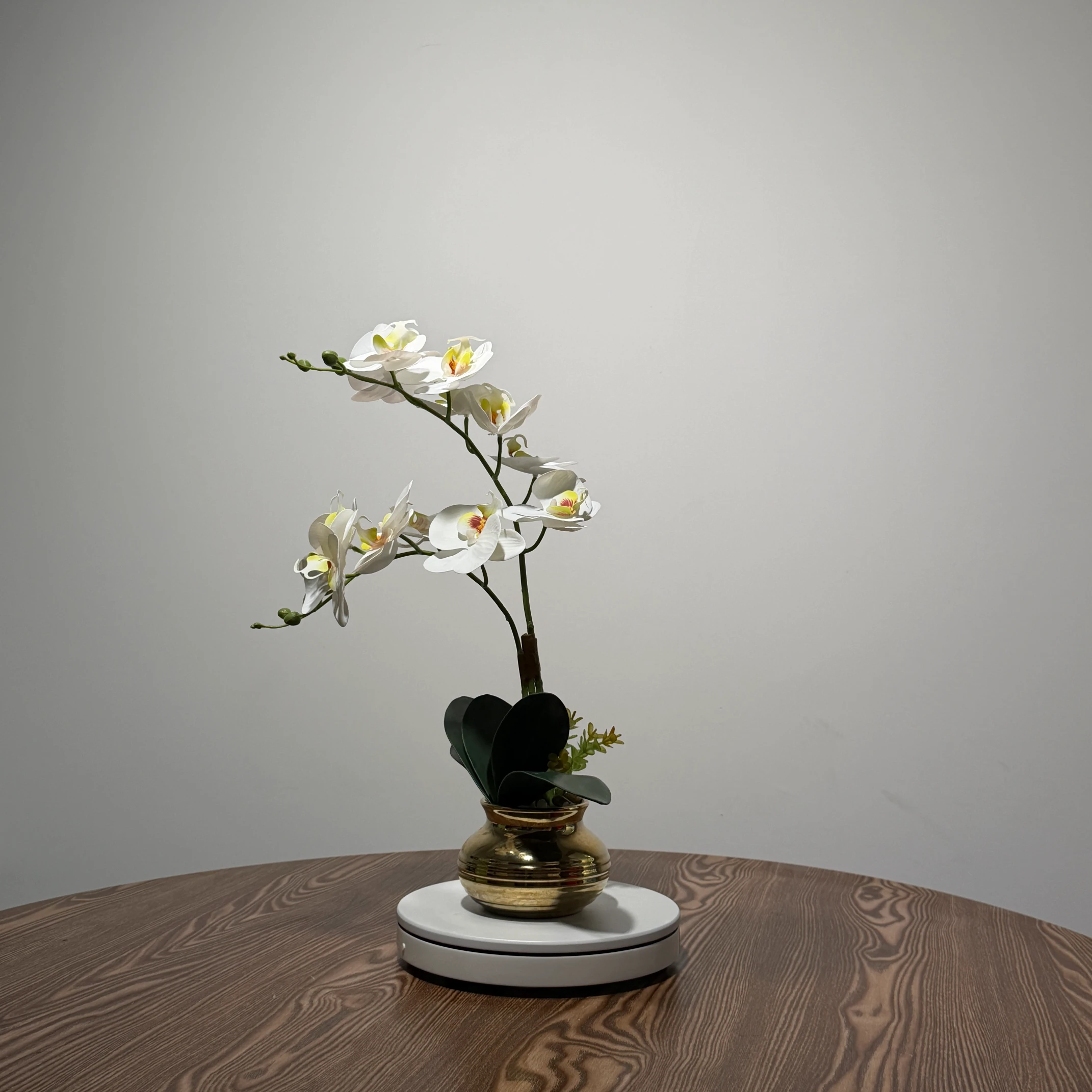 Este arranjo destaca-se pelo vaso de metal dourado texturizado, que combina com uma variedade de estilos de decoração, do clássico ao contemporâneo. Cada detalhe foi cuidadosamente pensado para entregar uma estética luxuosa e durável.