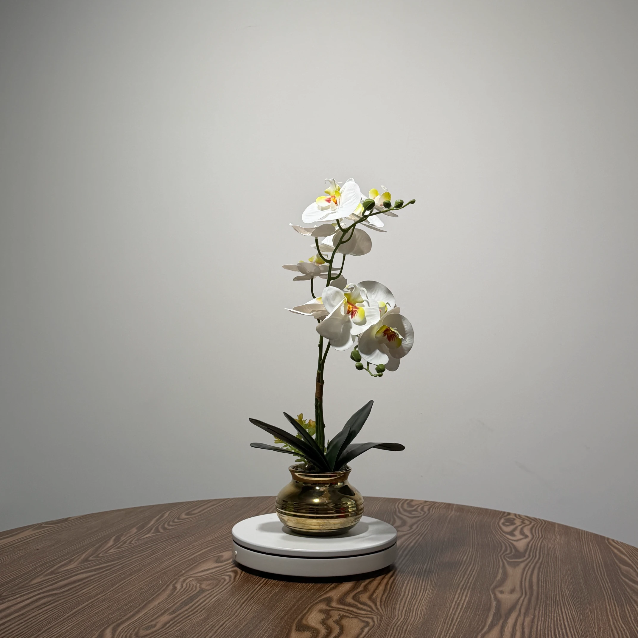 Transforme instantaneamente qualquer ambiente com o deslumbrante Arranjo de Orquídea Phalaenopsis Artificial. Suas flores brancas realistas, com um vibrante centro amarelo, trazem um toque natural e sofisticado para sua decoração, sem exigir manutenção.