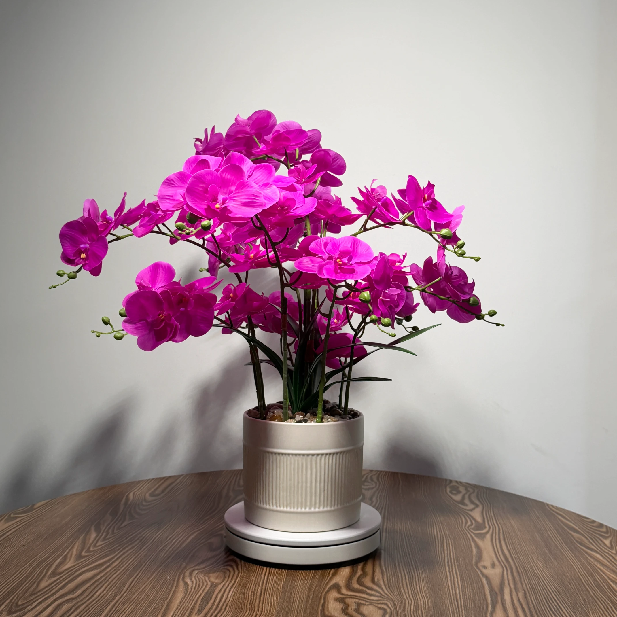 Leve elegância ao seu ambiente com nosso Arranjo de Orquídea Phalaenopsis Artificial. Com flores roxas intensas e realistas, este item transforma qualquer cômodo com um charme refinado e exclusivo.