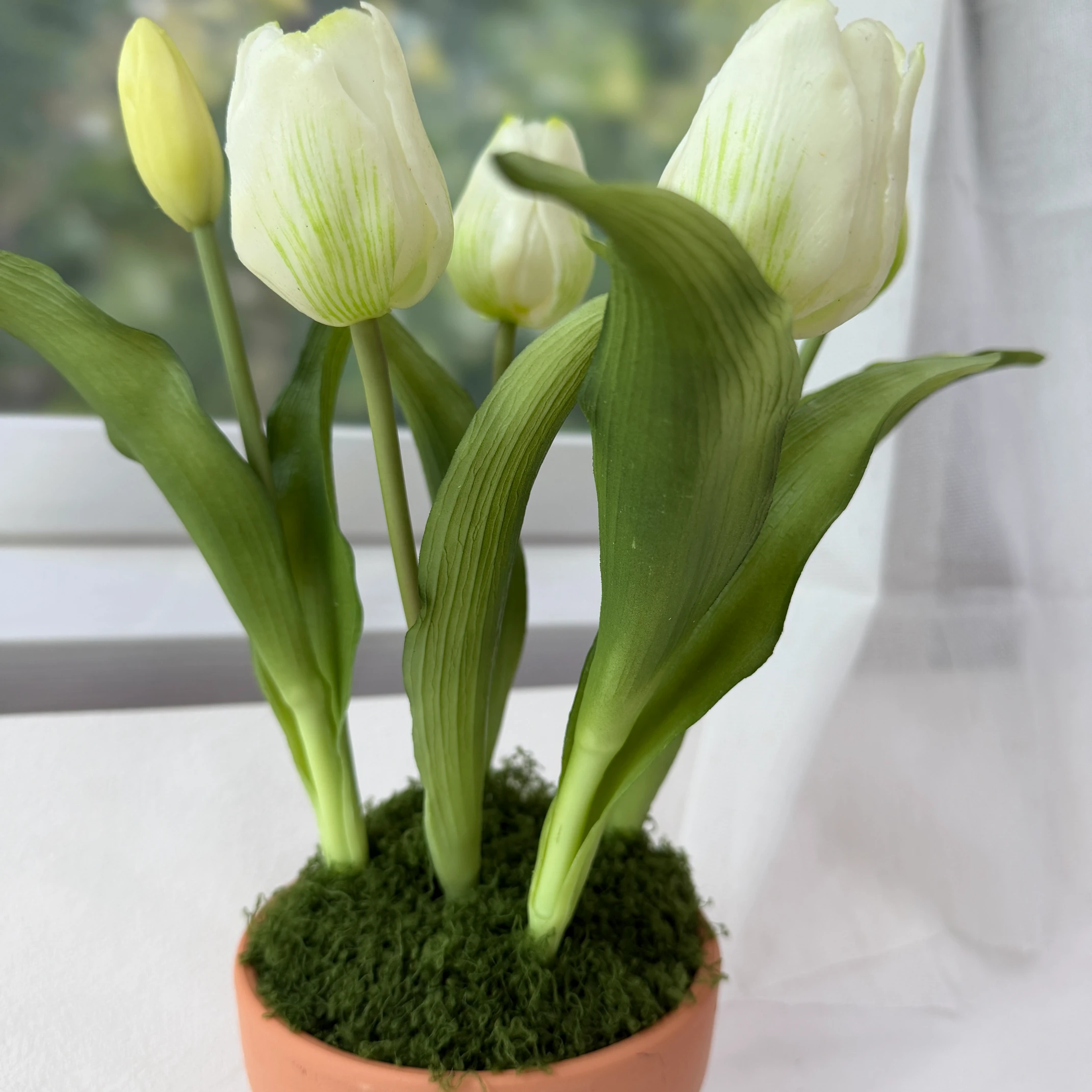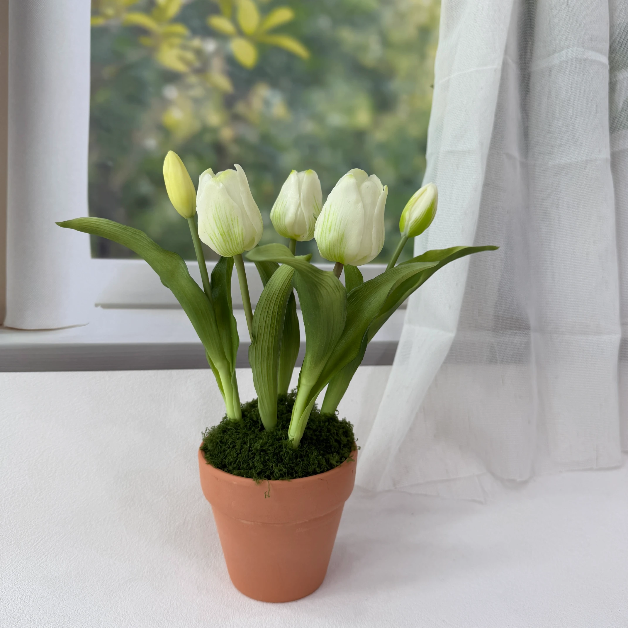 Transforme seu espaço com a elegância da Tulipa Branca Artificial em Vaso de Barro. Este arranjo traz a serenidade das tulipas brancas em uma apresentação incrivelmente realista, perfeita para adicionar charme a qualquer ambiente, sem a preocupação com manutenção.