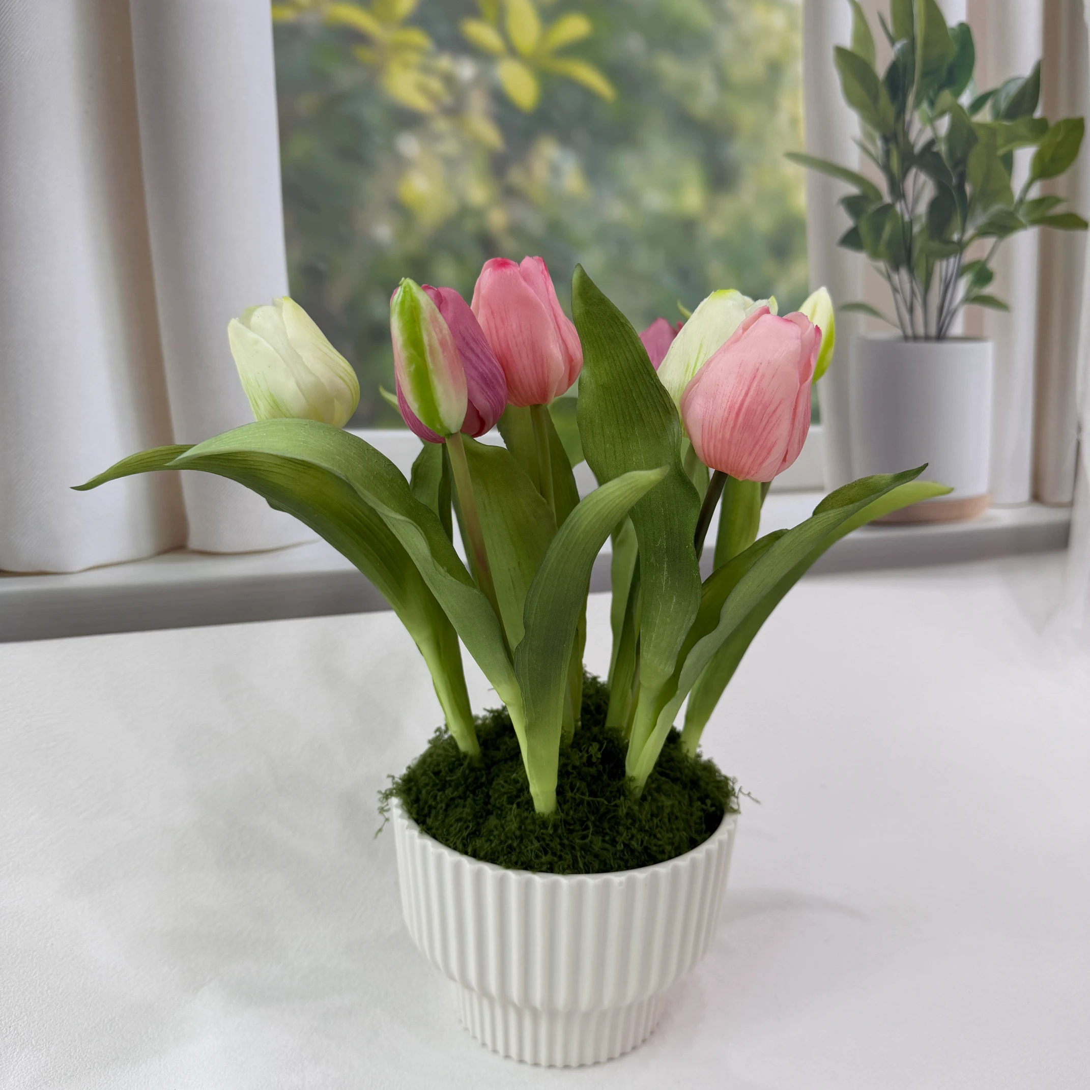 A Tulipa Rosa e Branca Artificial em Vaso é a escolha perfeita para quem deseja adicionar charme e sofisticação à decoração de qualquer ambiente. Projetada com atenção aos mínimos detalhes, ela imita a beleza natural das flores frescas, garantindo um visual delicado e realista.