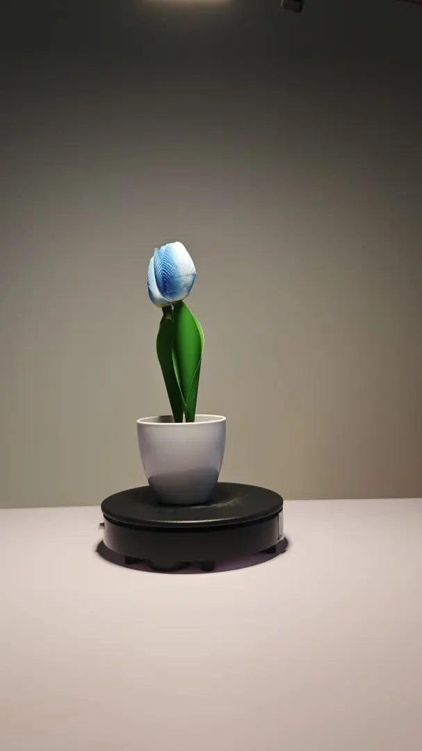 Cachepot com duas tulipas artificiais no gradiente de azul para branco, oferecendo um visual sereno e fresco. Perfeita para criar uma atmosfera tranquila em banheiros, home offices ou prateleiras de leitura. As flores mantêm o frescor do mar sem necessitar de cuidados, trazendo paz e estilo à sua decoração diária.