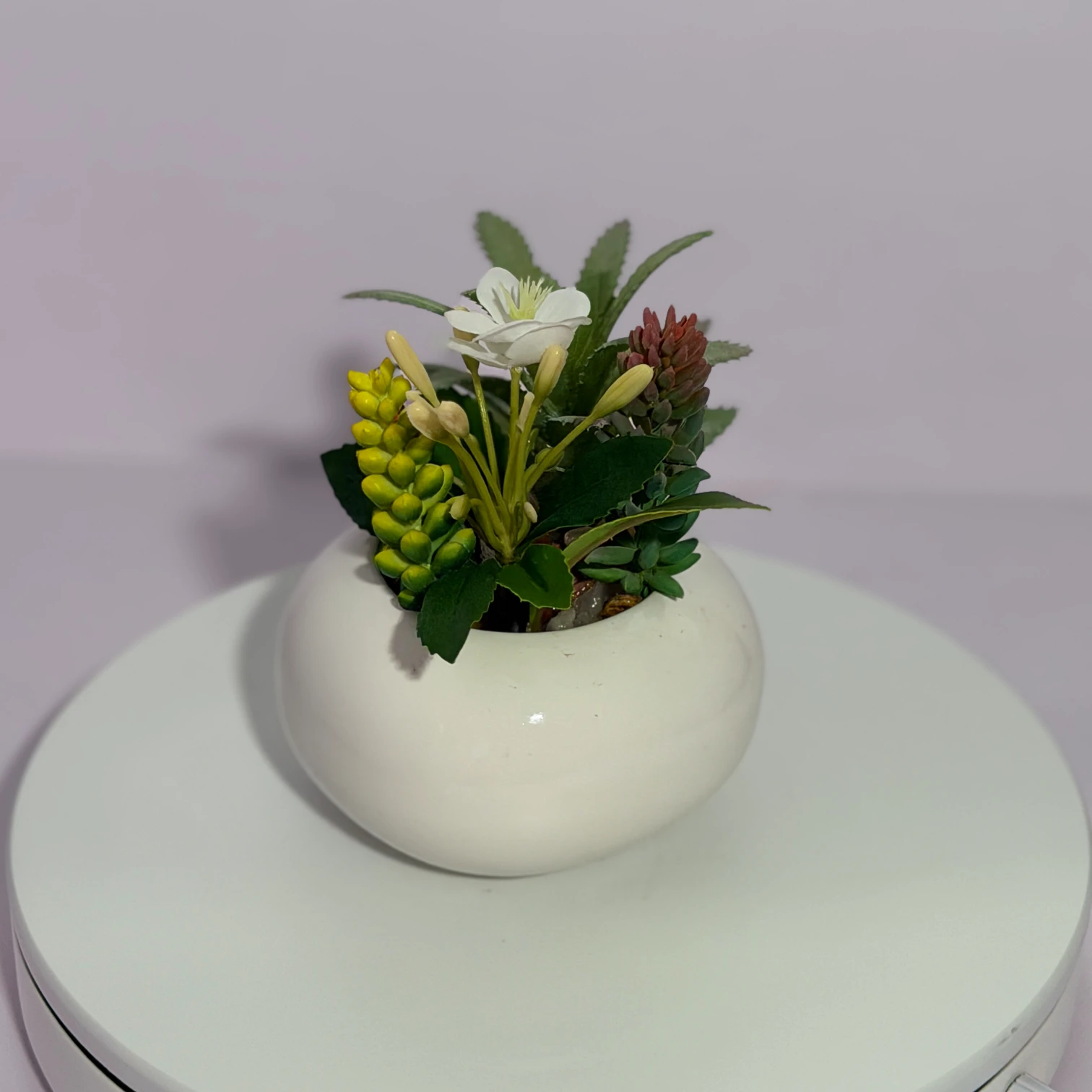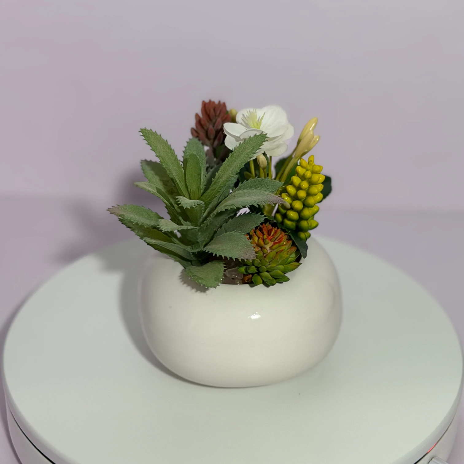 Planta Artificial com Suculentas e Frutos Vermelhos | Vaso de Cerâmica Branca | Estilo Tropical
