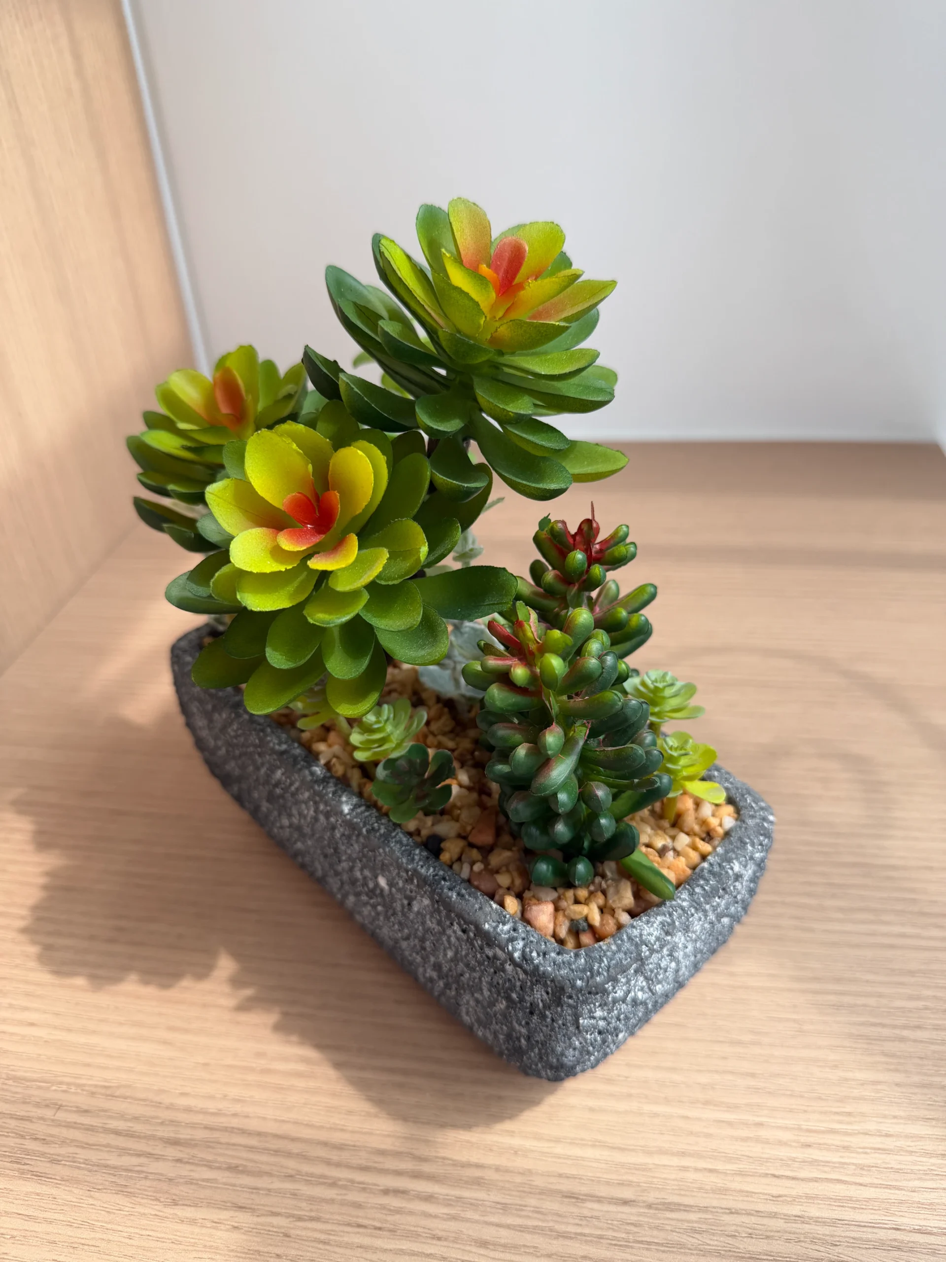Planta Artificial Suculenta Decorativa | Vaso de Cimento Texturizado