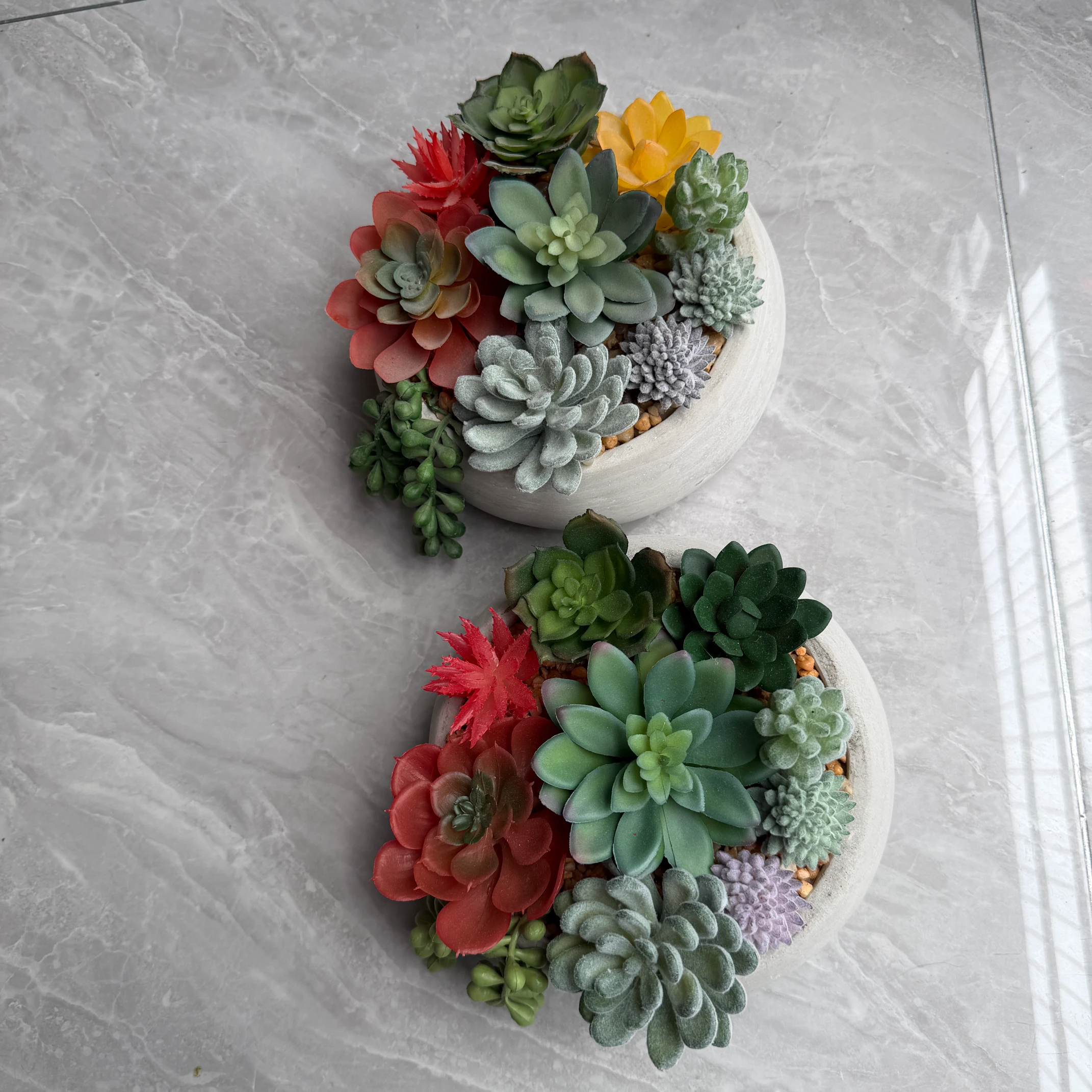 Planta Artificial Suculenta Decorativa | Vaso de Cimento Texturizado