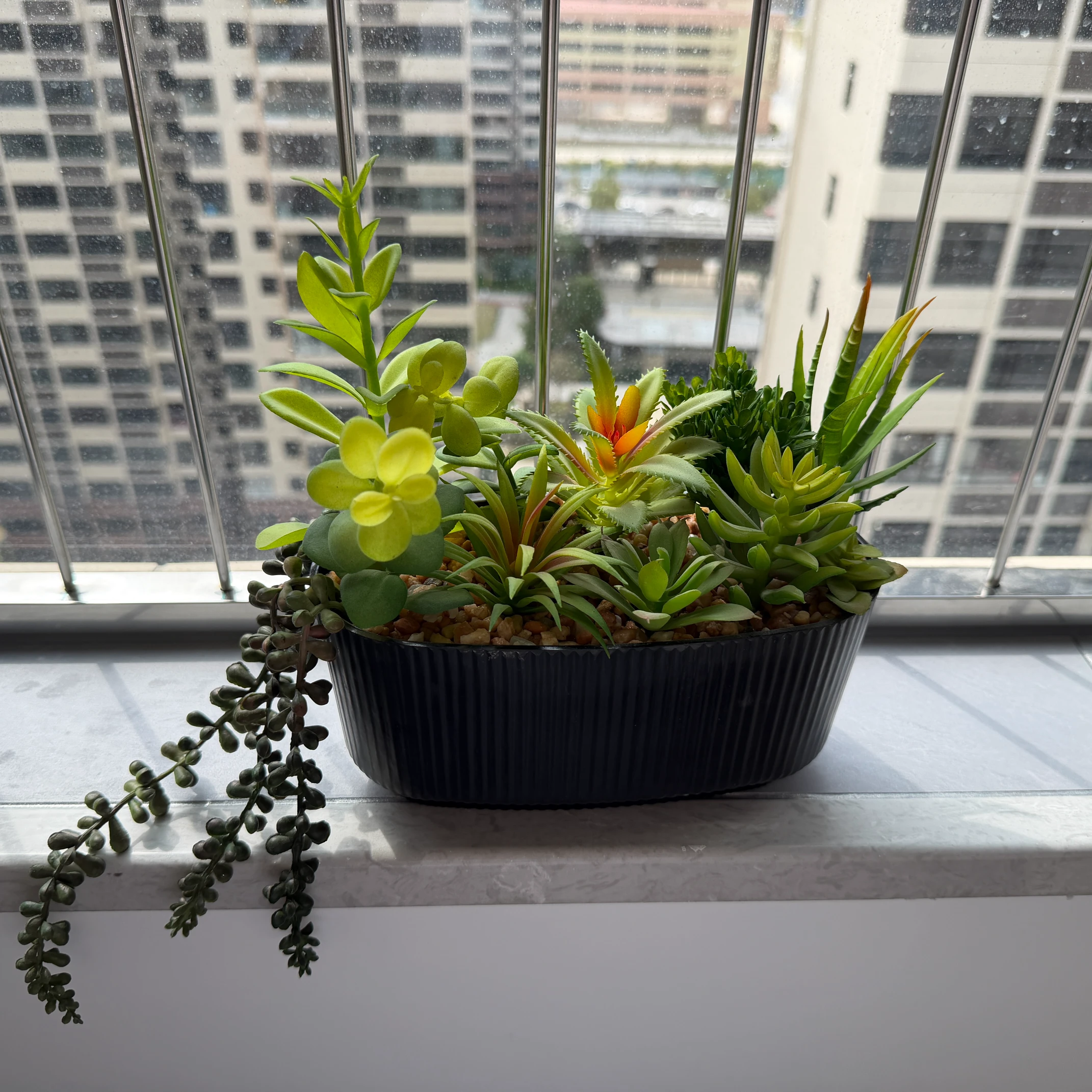 Crassula Ovata (Árvore de Jade) :Símbolo de sorte, muito procurada no mercado lusófono, versão artificial compacta para escritórios e recepções.