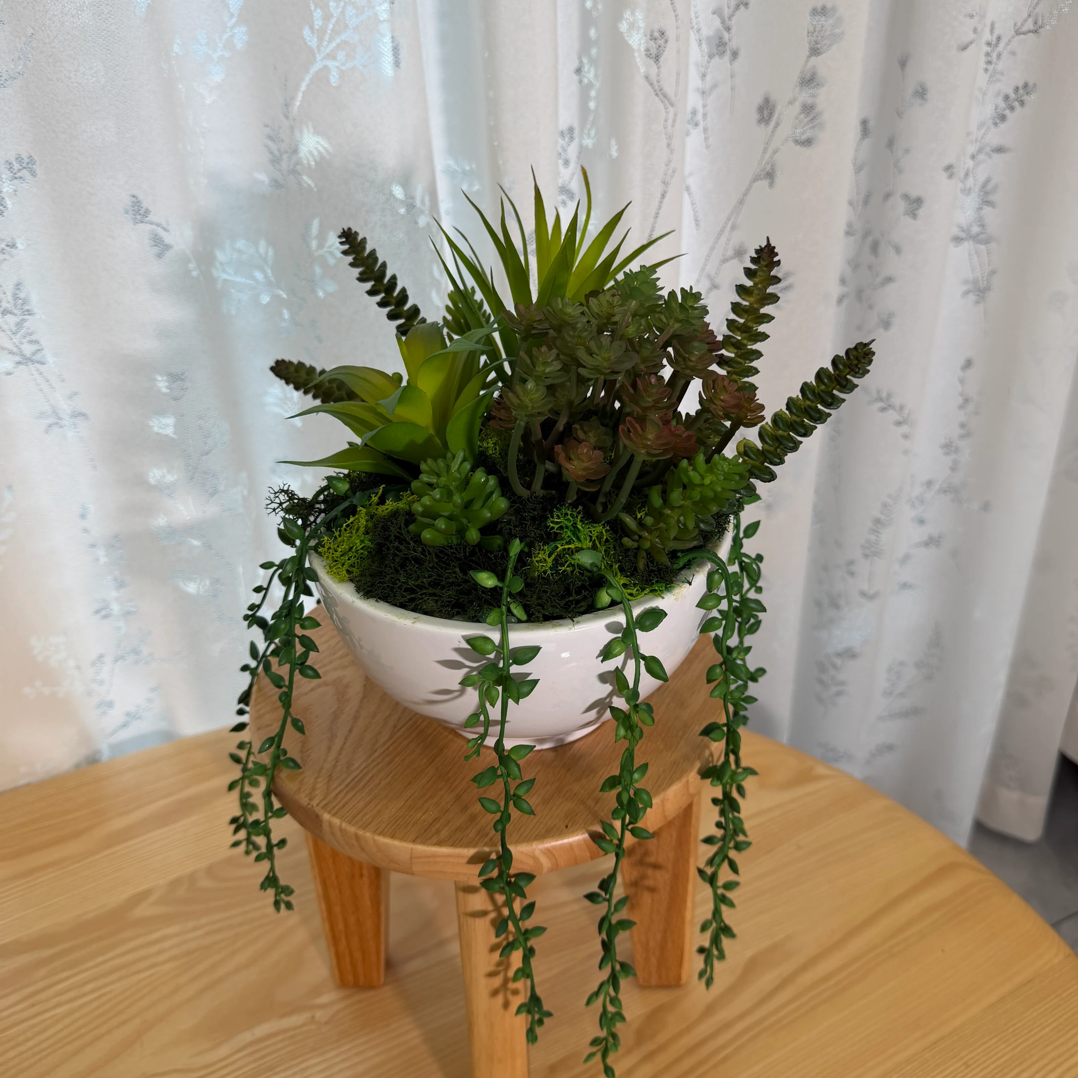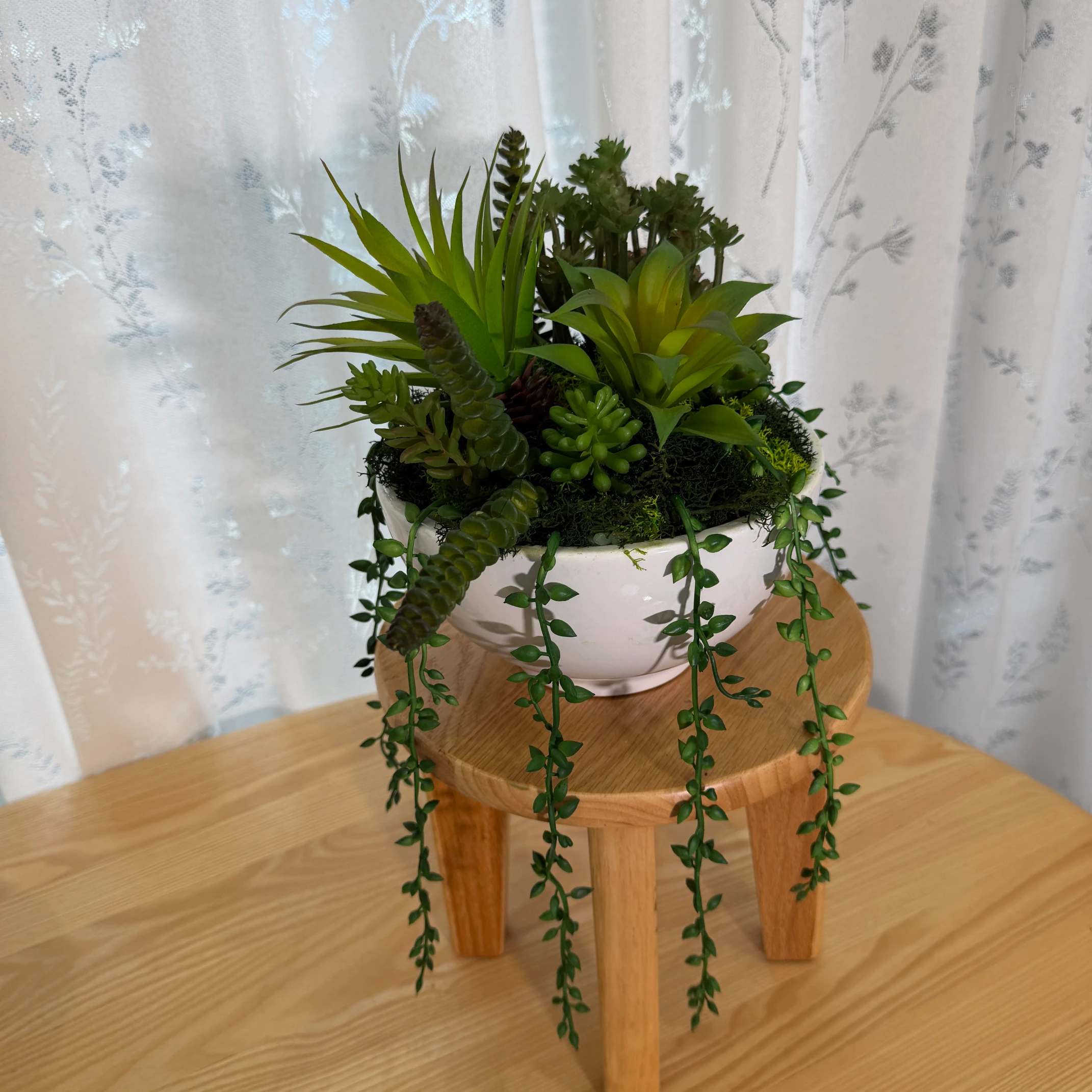 Senecio Rowleyanus (Colar de Pérolas) :Suculenta pendente realista, ideal para vasos suspensos e decoração estilo boho.