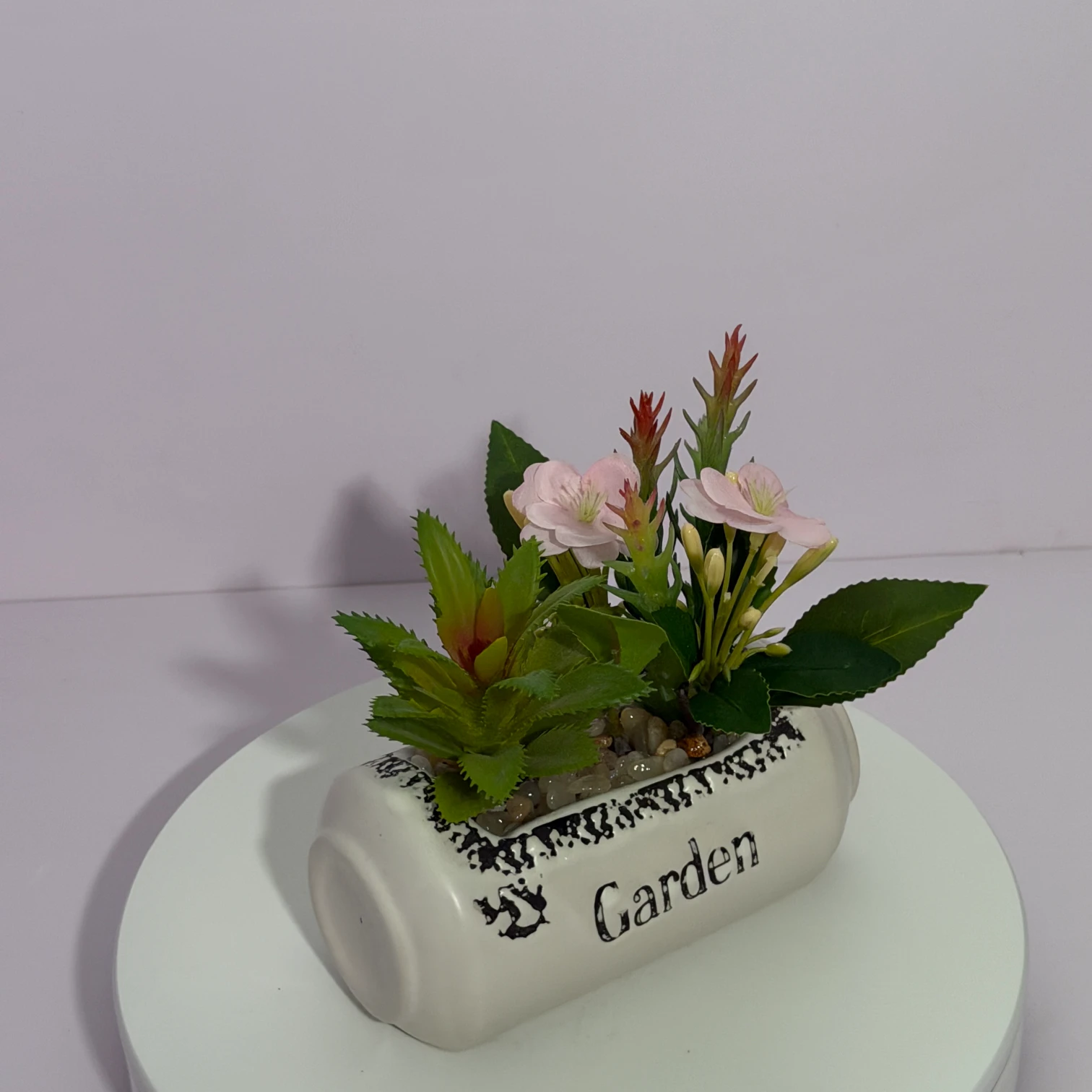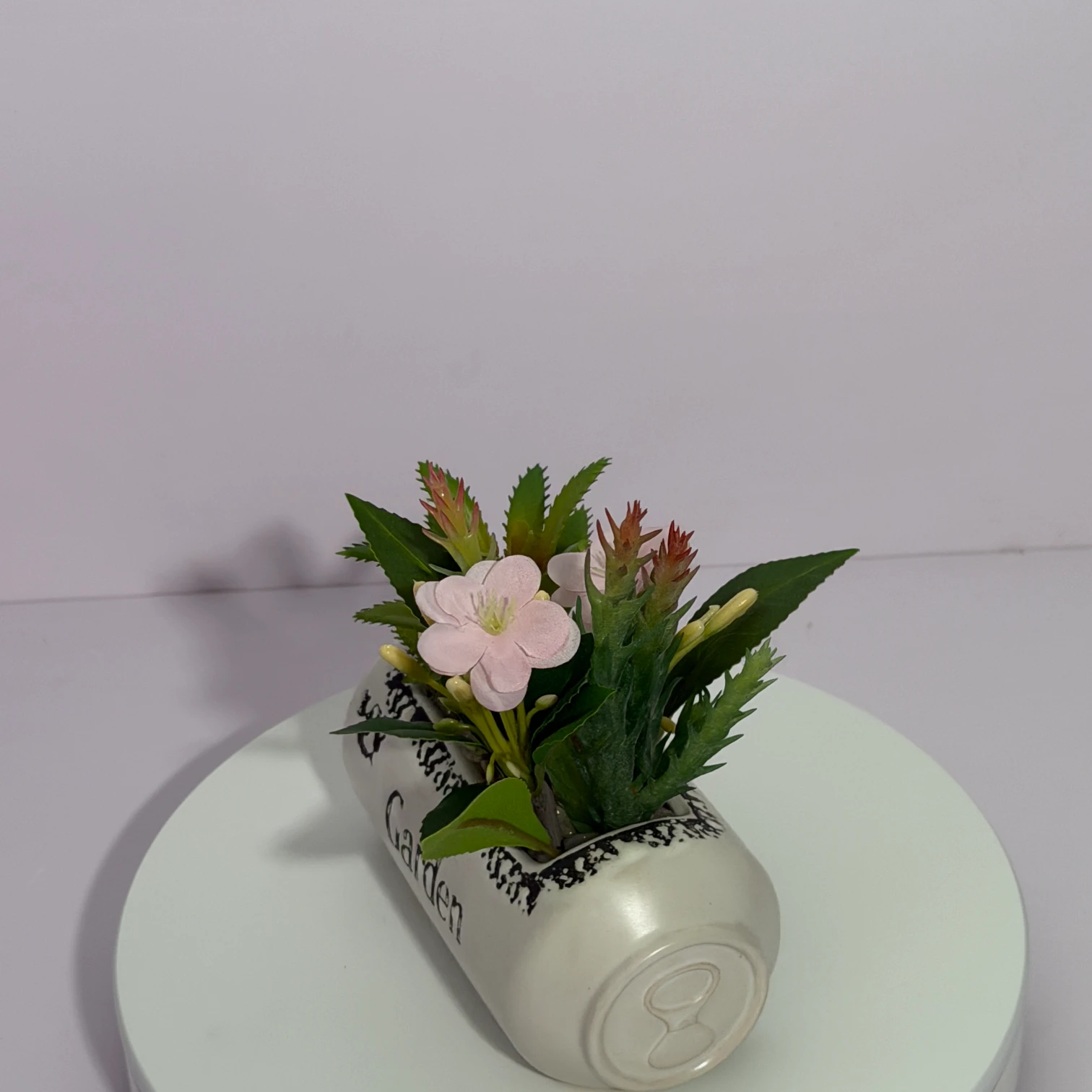 Cacto Artificial com Flor em Vaso Vintage “Garden” | Decoração de Escritório